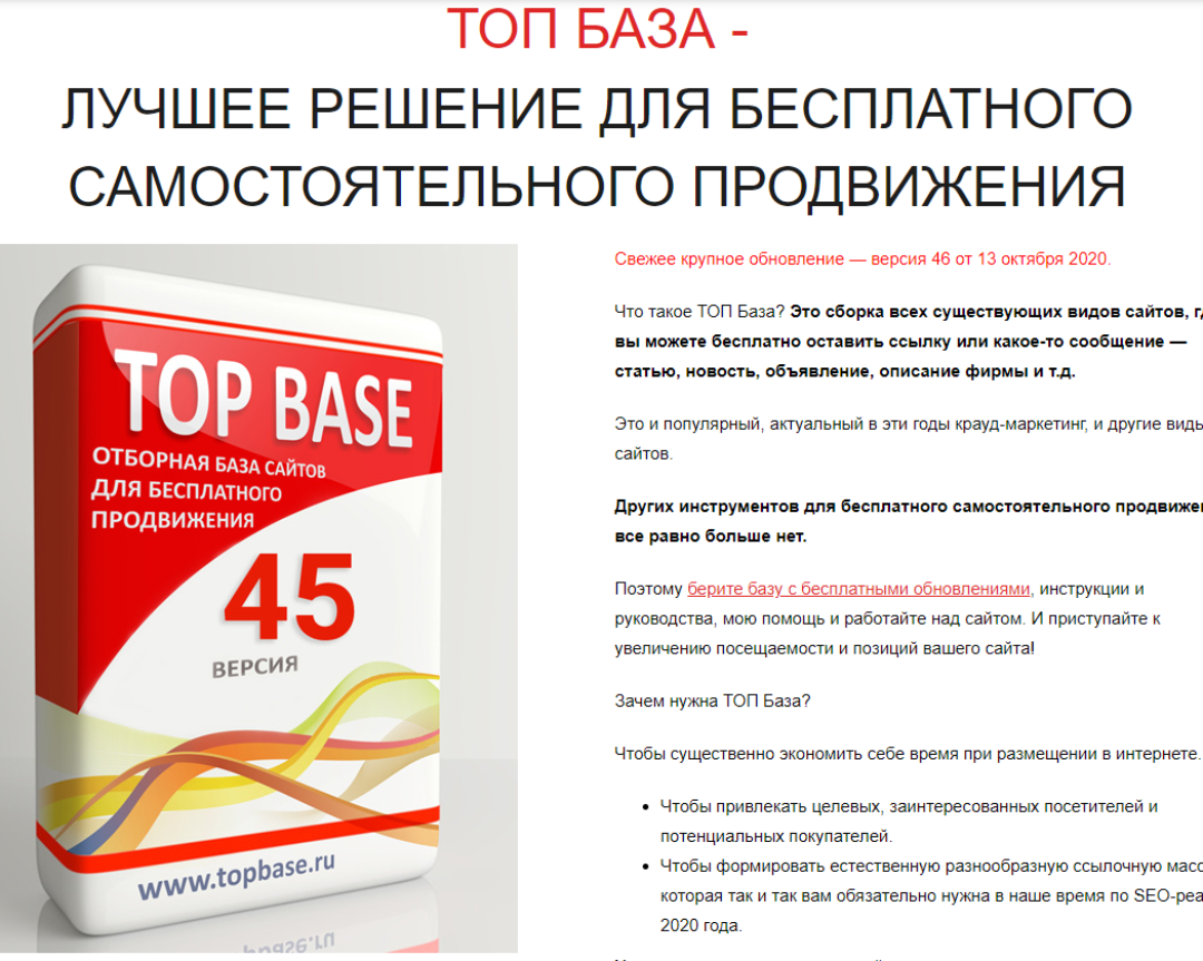 [ТОП База – версия 45] Лучший инструмент сегодня для бесплатного продвижения сайтов